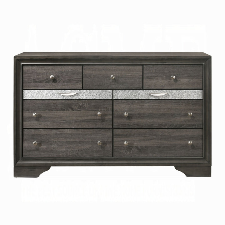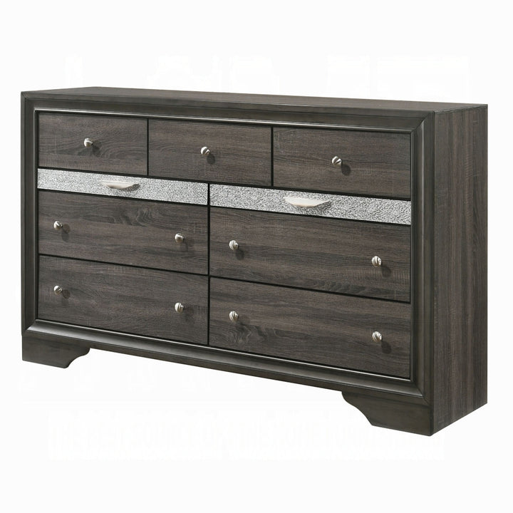 Drawer Size: A) 20" x 14" x 8"H (Top 3 Drawers, Single Knob), B) 29" x 14" x 9"H (Bottom 4 Drawers, Double Knobs), C) 29" x 14" x 3"H (Mid 2 Jewelry Drawers, Sparkling Fronts, Single Pull Handle)