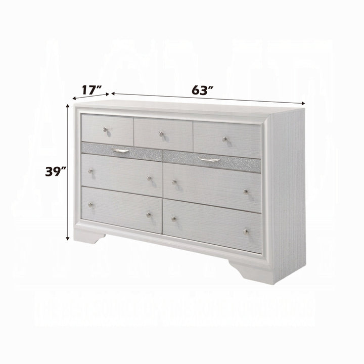 Drawer Size: A) 20" x 14" x 8"H (Top 3 Drawers, Single Knob), B) 29" x 14" x 9"H (Bottom 4 Drawers, Double Knobs), C) 29" x 14" x 3"H (Mid 2 Jewelry Drawers, Sparkling Fronts, Single Pull Handle)